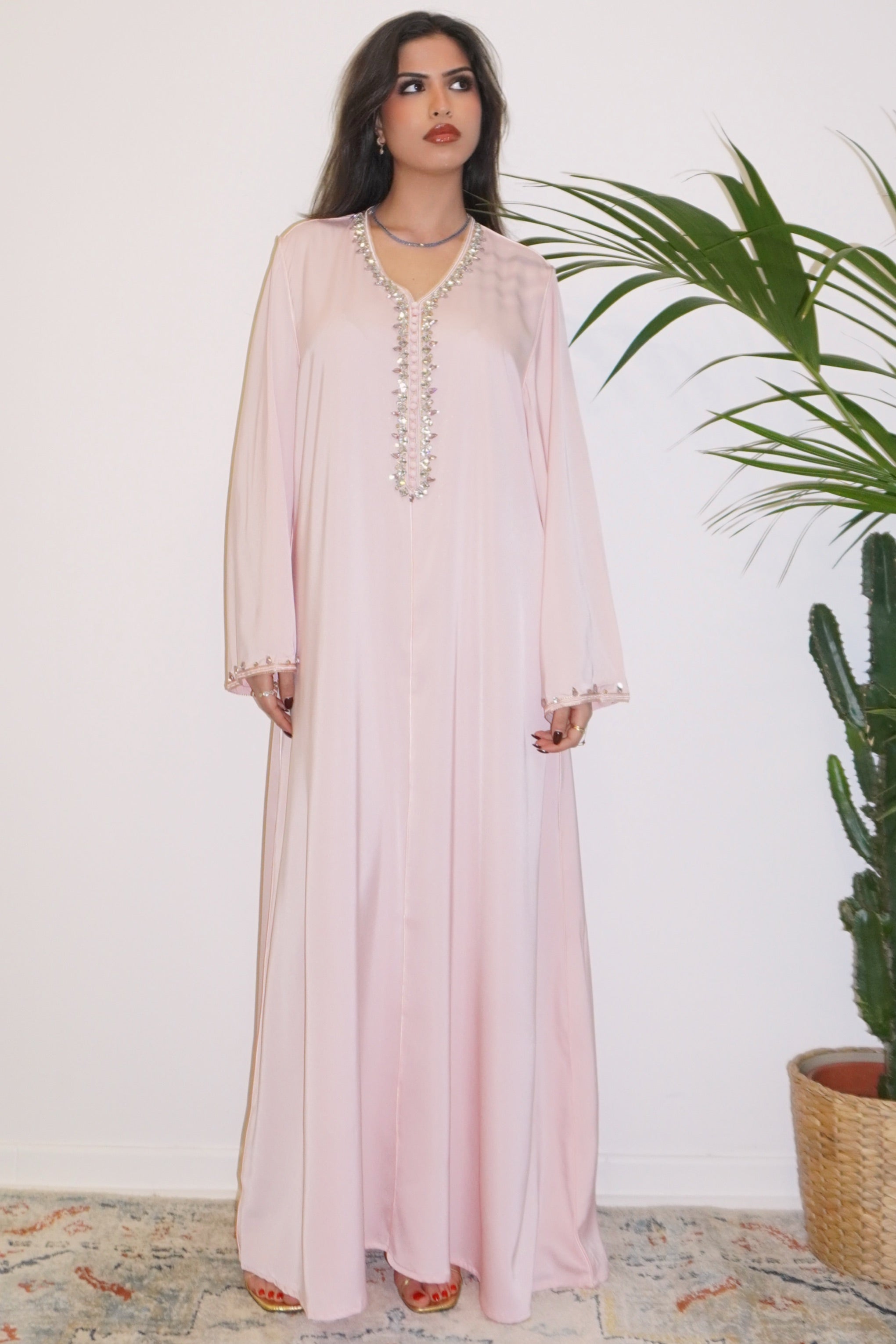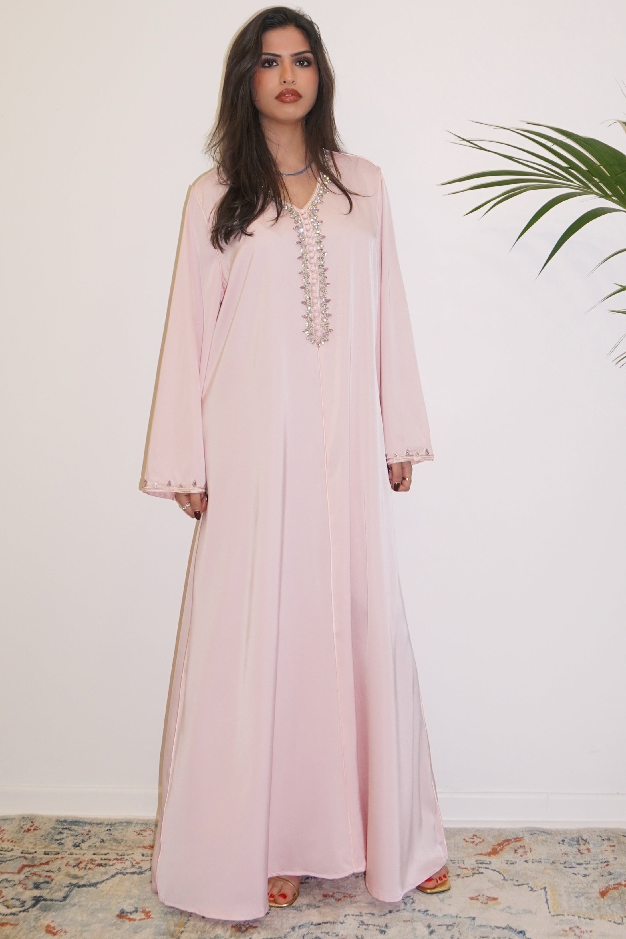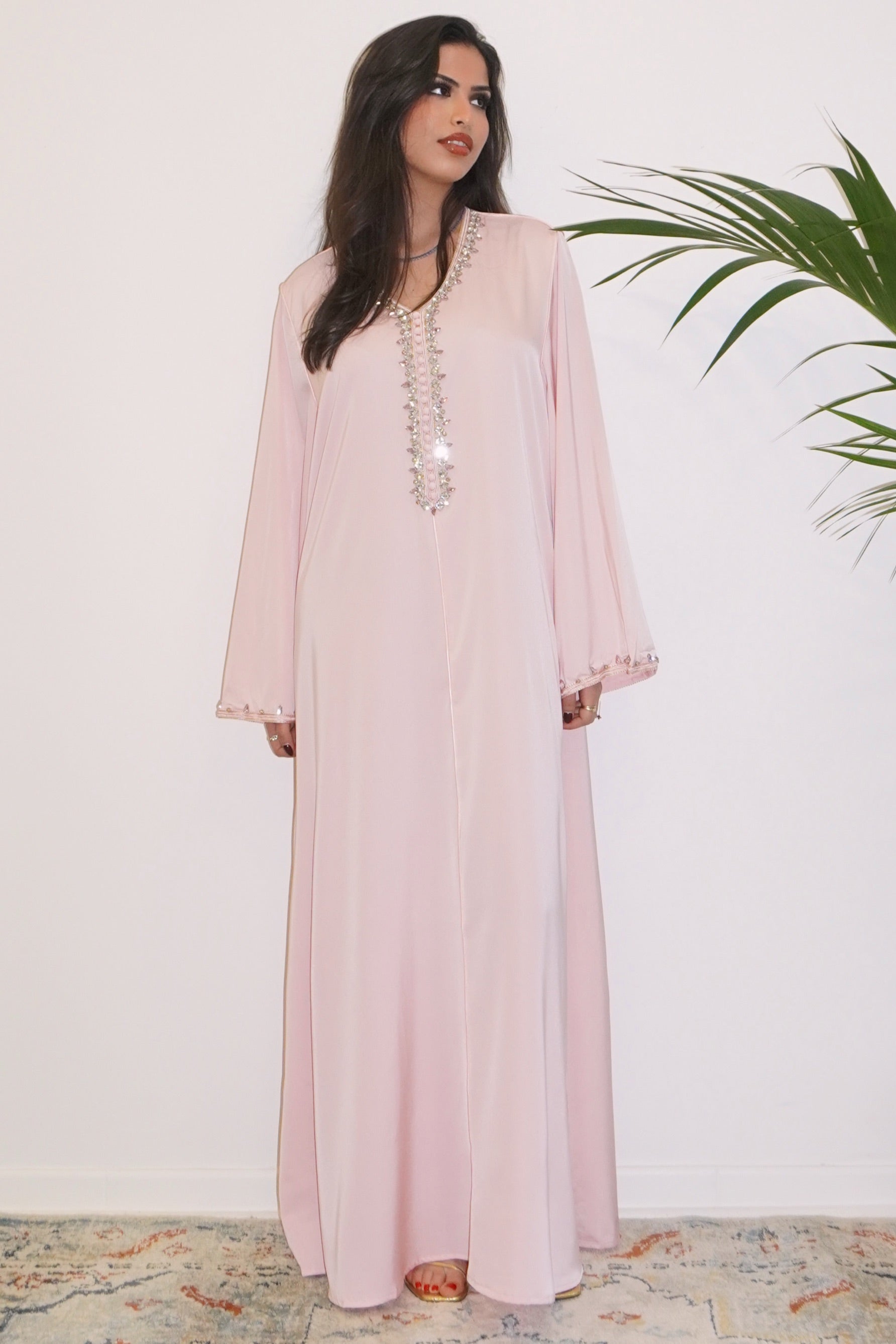 ROBE PREMUIM ROSE POUDRÉ ORNÉE DE STRASS