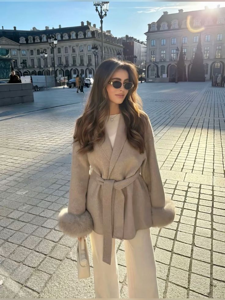 MANTEAU EN LAINE ET FOURRURE VEGAN