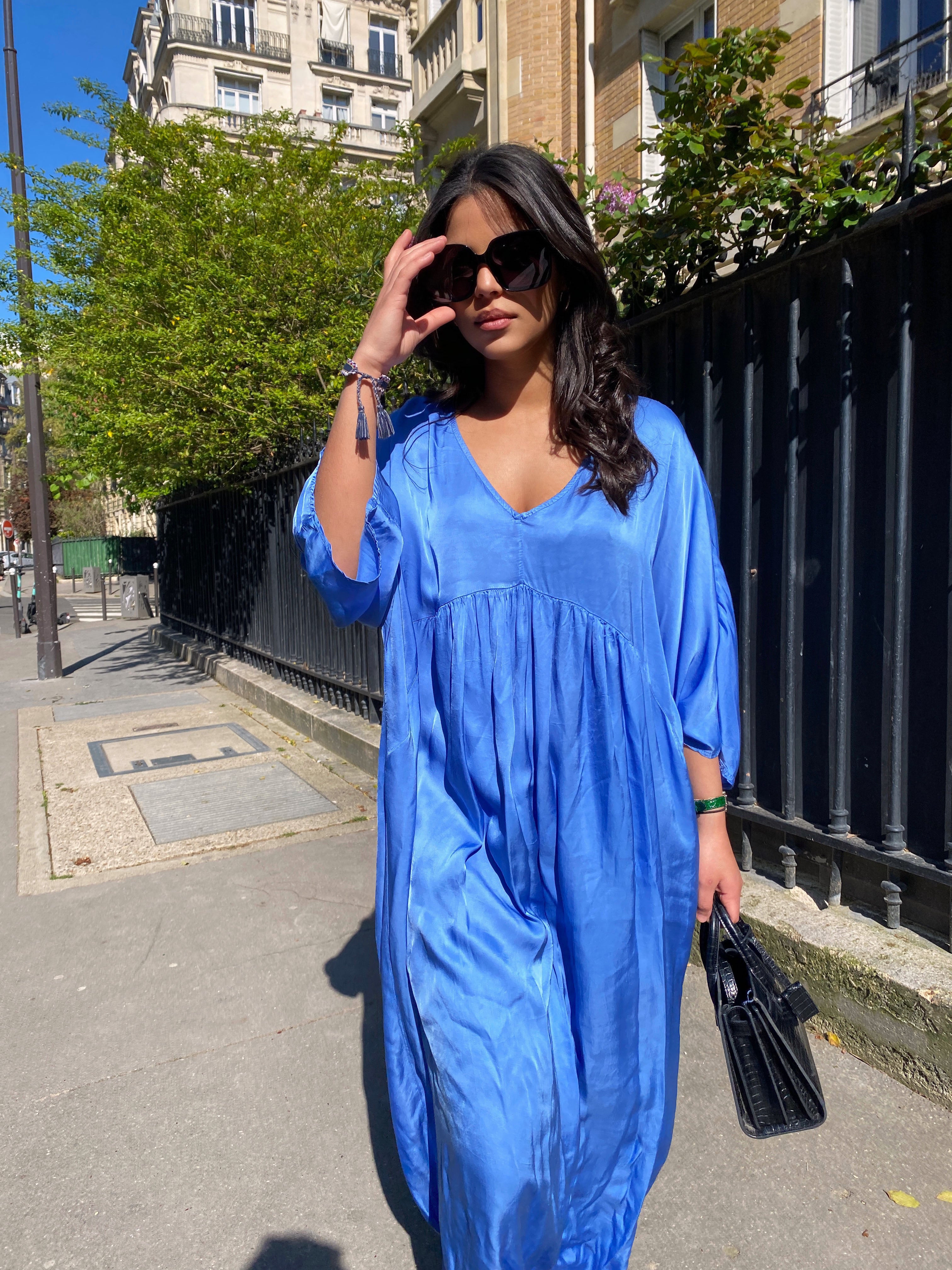 ROBE LONGUE BLEUE EN SOIE