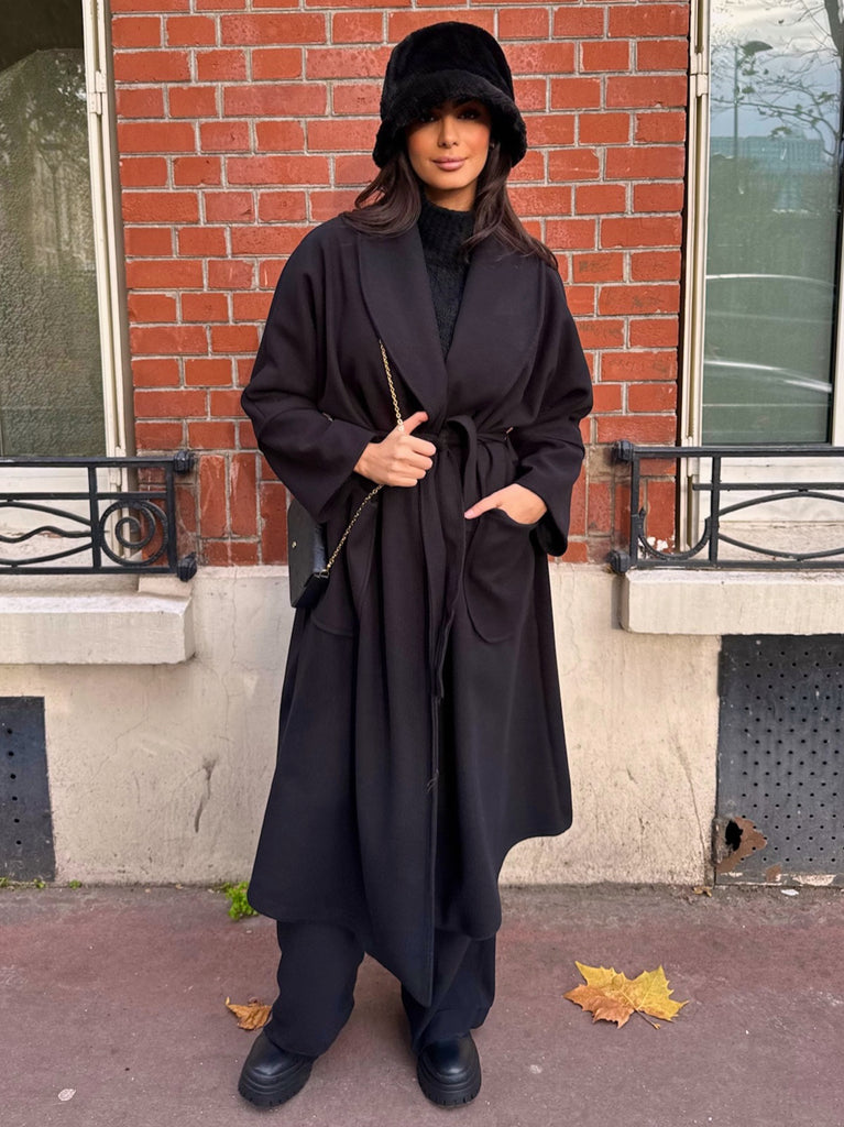MANTEAU NOIR AVEC CEINTUREÂ