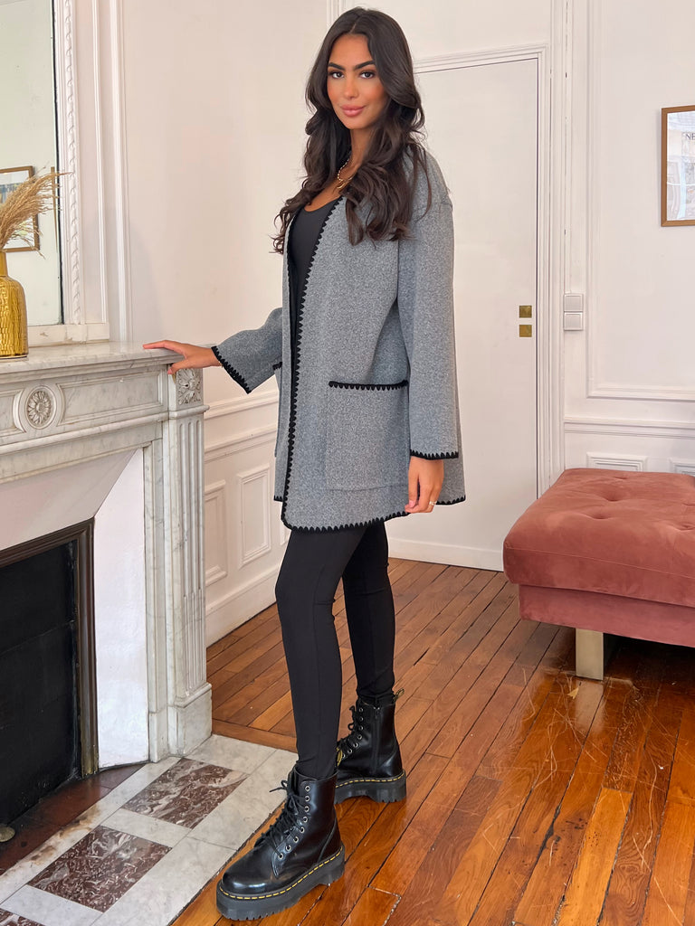 Cette veste à manches longues et la simplicité et le confort. Son tissu de haute qualité enveloppe délicatement votre silhouette, offrant chaleur et style en toute saison. La coupe courte apporte une touche moderne et dynamique. Tendance cette veste est un essentiel de votre garde-robe, parfaitement adaptée pour compléter tout look, du plus décontracté au plus formel.