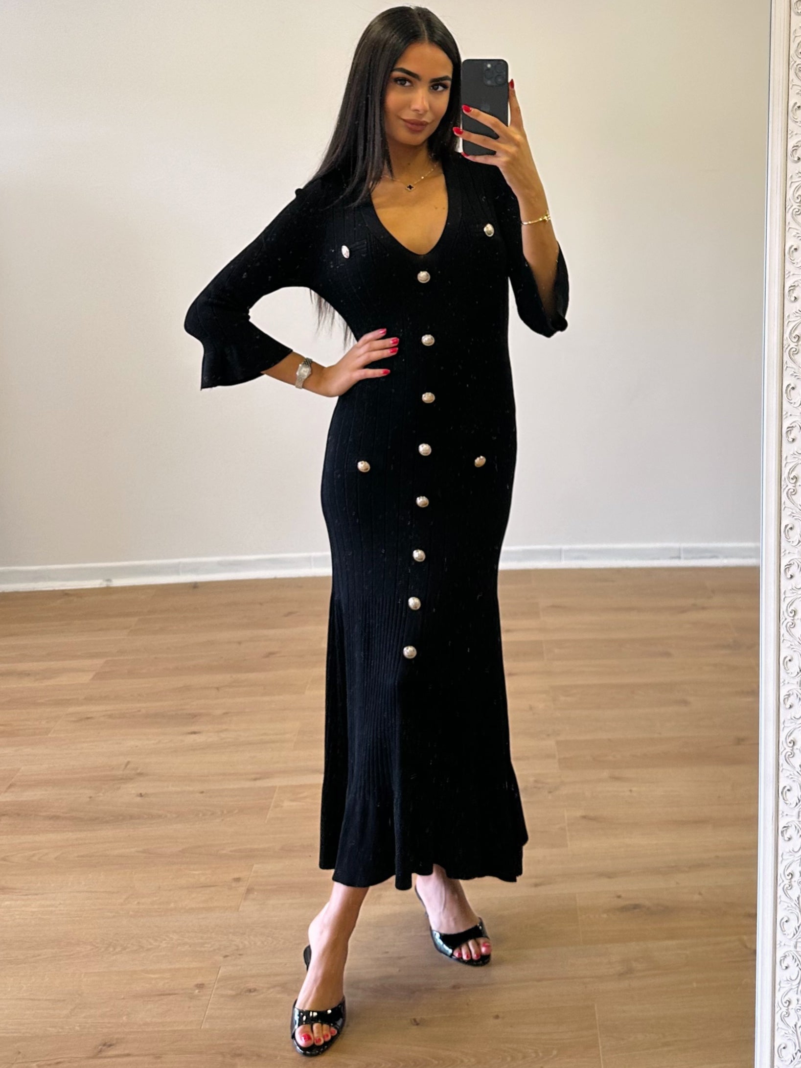 LONGUE ROBE MOULANTE NOIRE A BOUTONSÂ