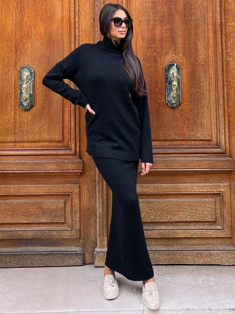 L'ensemble 'Hortensia' est juste parfait le pull à manches longues ainsi qu'une jupe longue sera parfaite pour l'automne à porter avec des escarpins ou baskets.