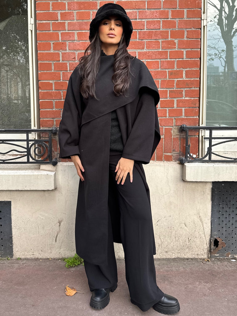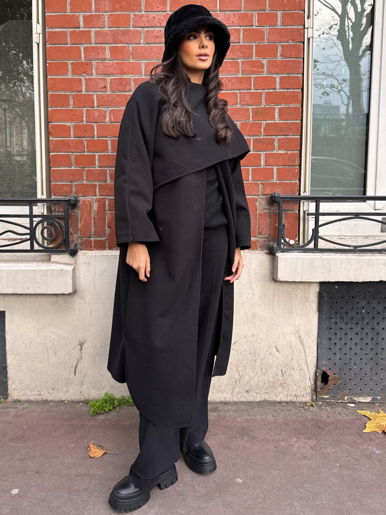 MANTEAU LONG À ÉCHARPE INTÉGRÉ