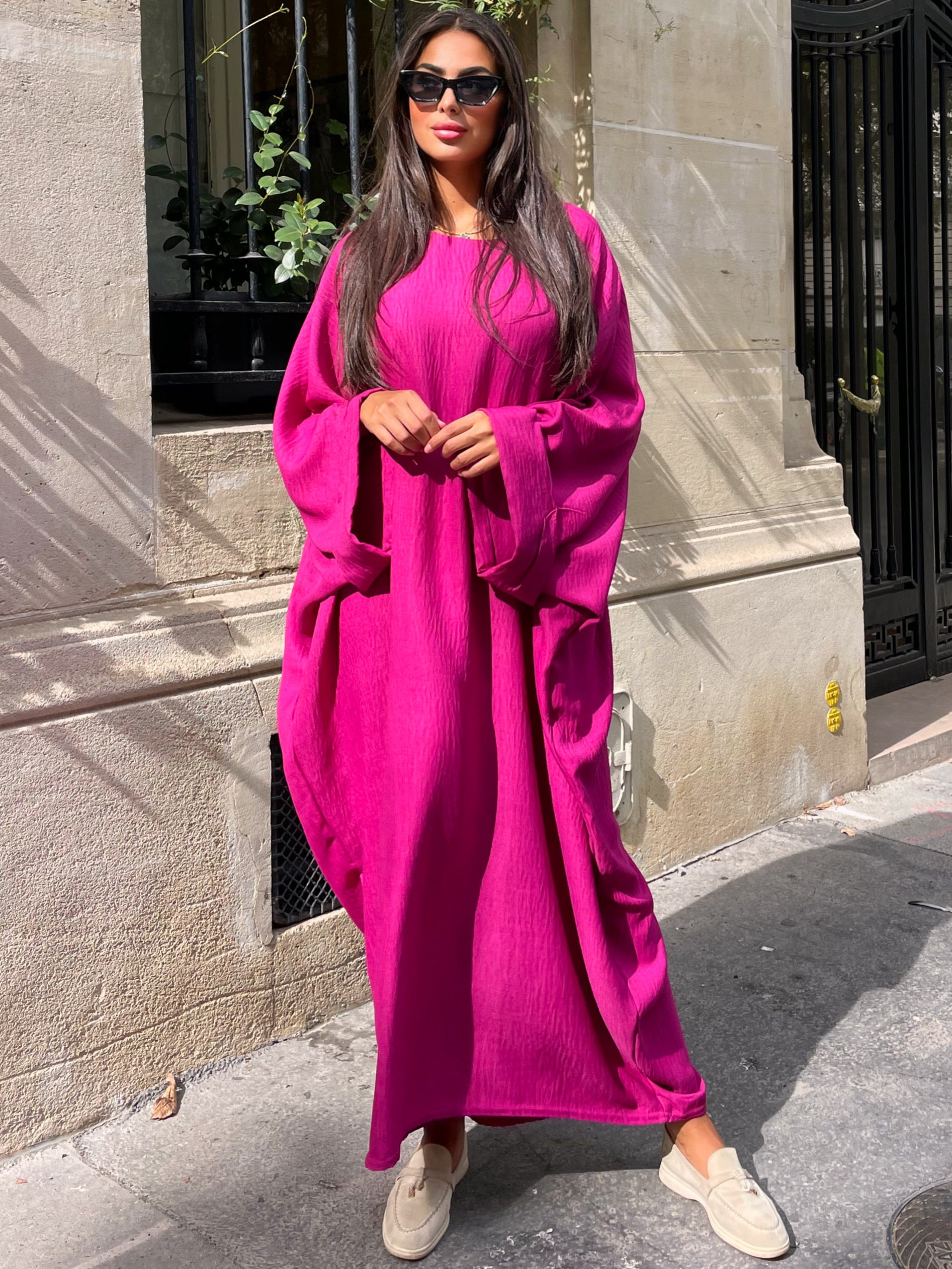 La longue robe 'Melona' sera parfaite pour vous. Manches longues et larges une matière inégalable qui ne vous tiendra pas chaud pour ce automne. À mettre avec des talons ou sandales et pour toutes occasions.