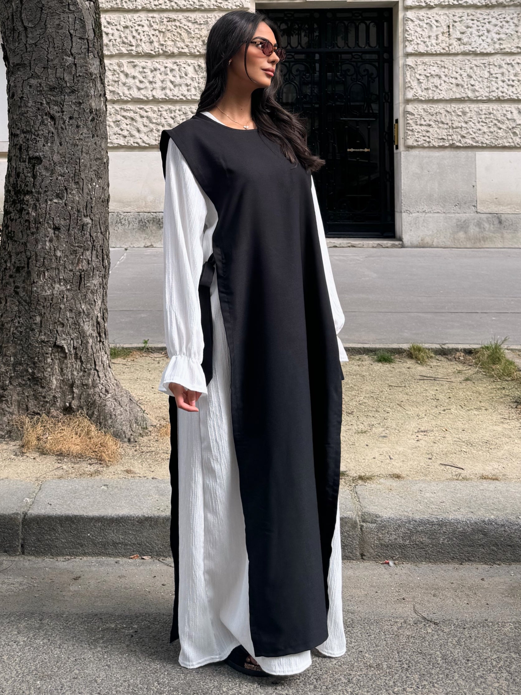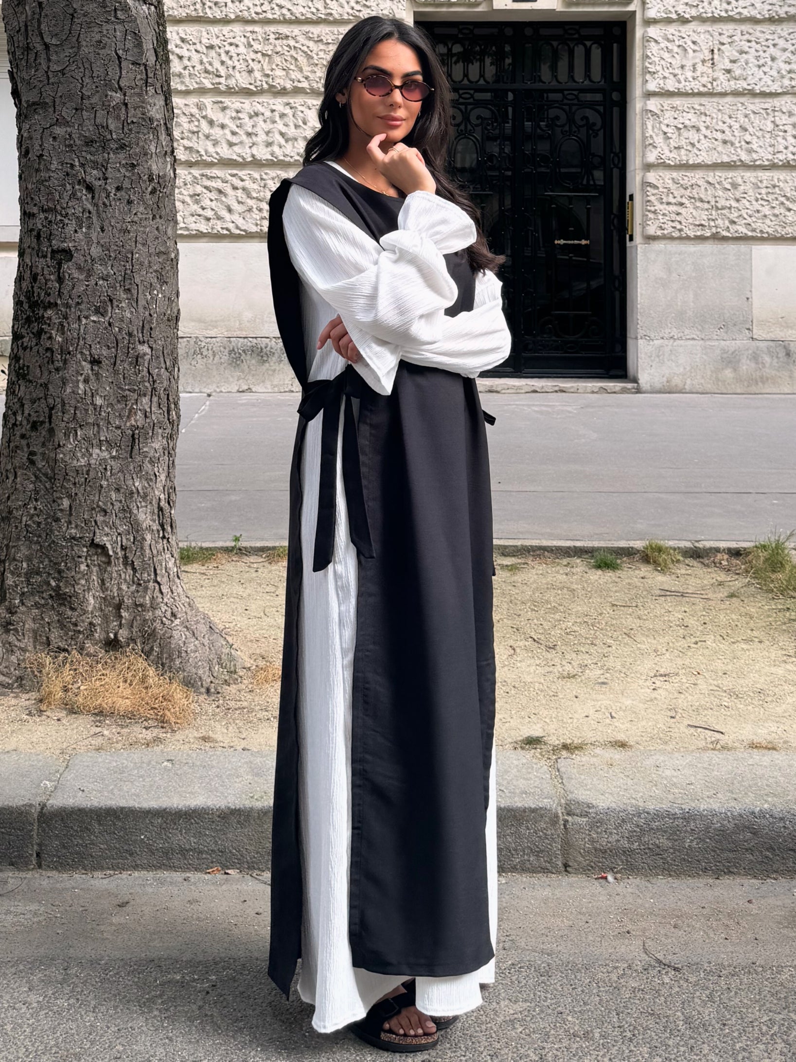 ENSEMBLE 2 PIECES : FOND DE ROBE + SUR-ROBE À NOEUDS