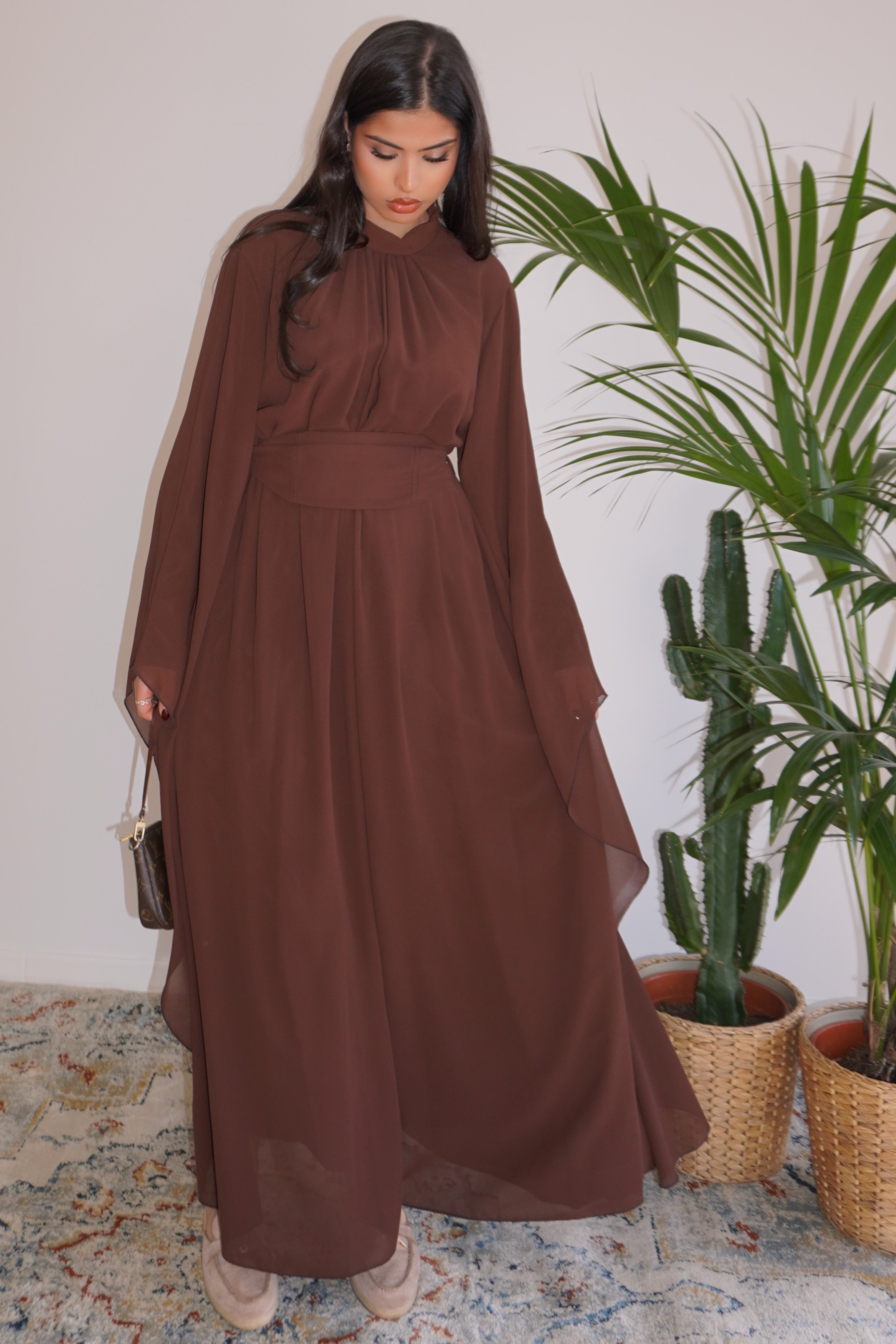 LONGUE ROBE À MANCHES ÉVASÉES