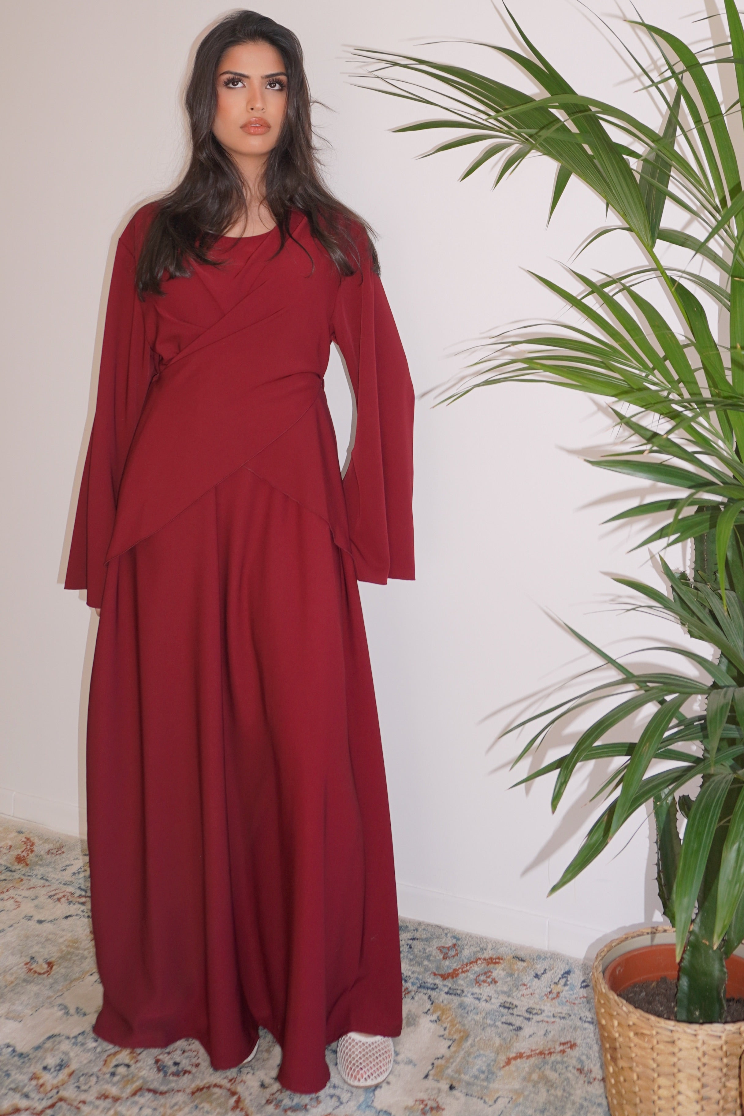ROBE LONGUE CROISÉE À MANCHES LONGUES
