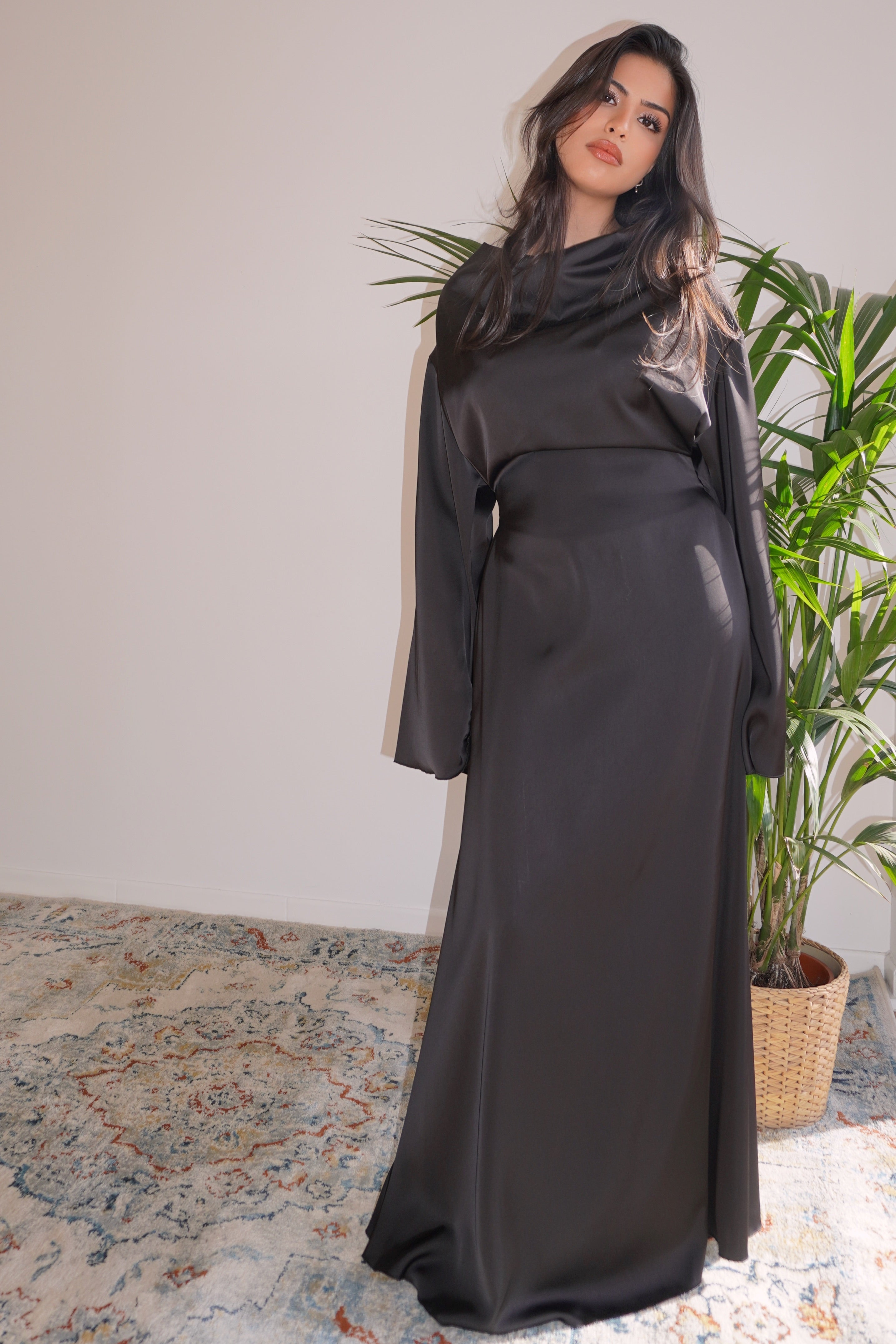 LONGUE ROBE SATINÉE NOIRE