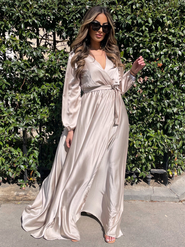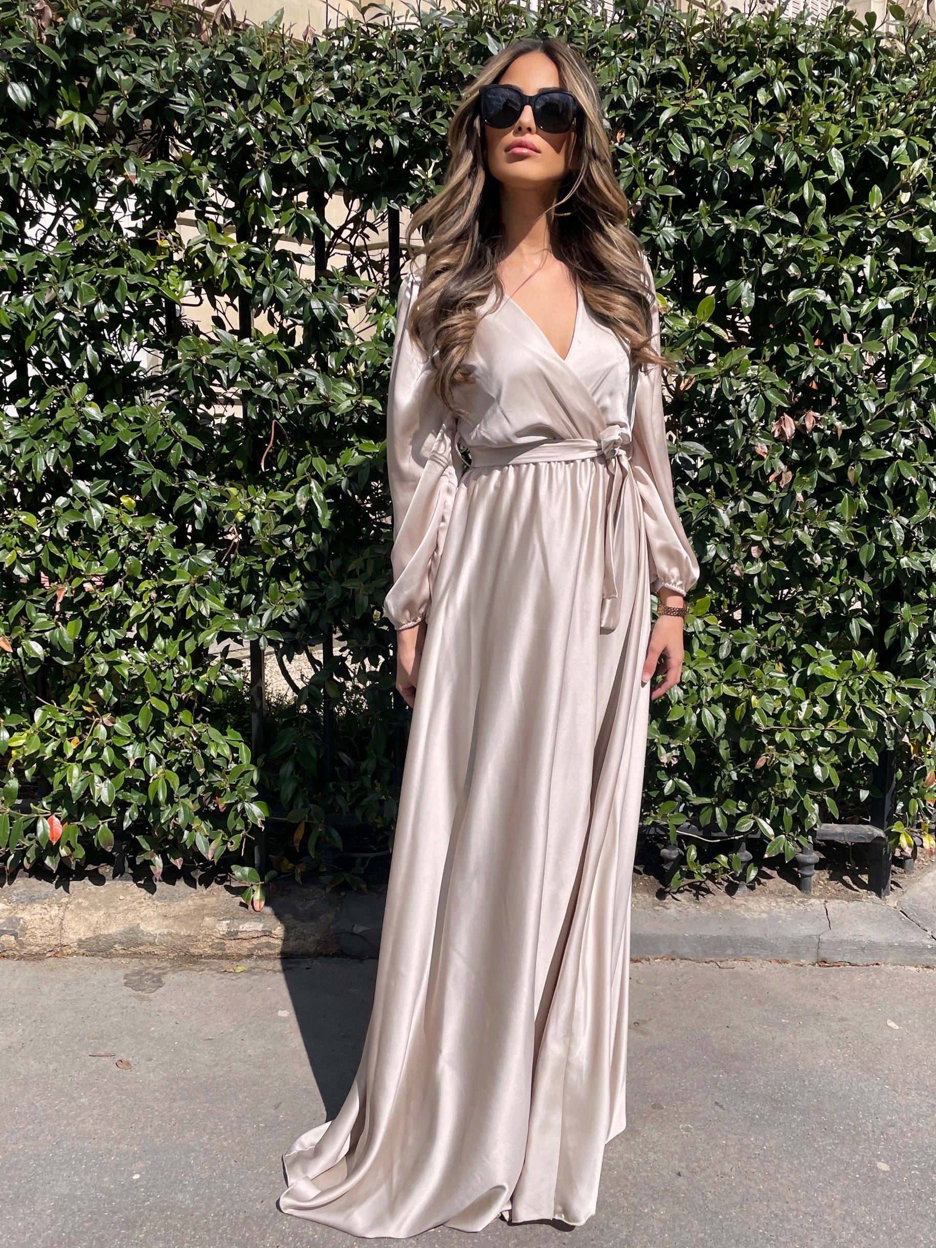 ROBE SATINÉE À MANCHES LONGUES